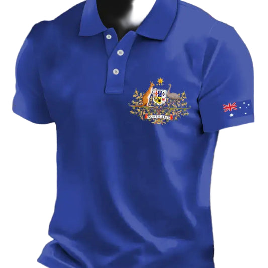 Men's Vintage Australian Flag Crest Printed Casual Cotton Short Sleeve Polo Shirt
