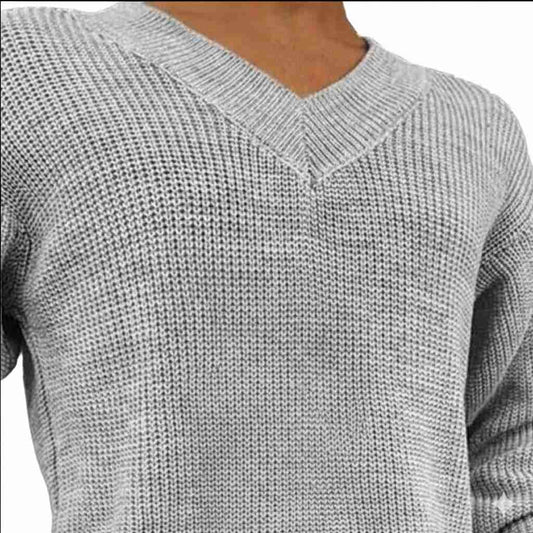 Men's Vintage Solid Color V Neck Long Sleeve Knitted Sweater