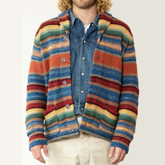Men's Vintage Rainbow Colorblock Jacquard Lapel Cardigan